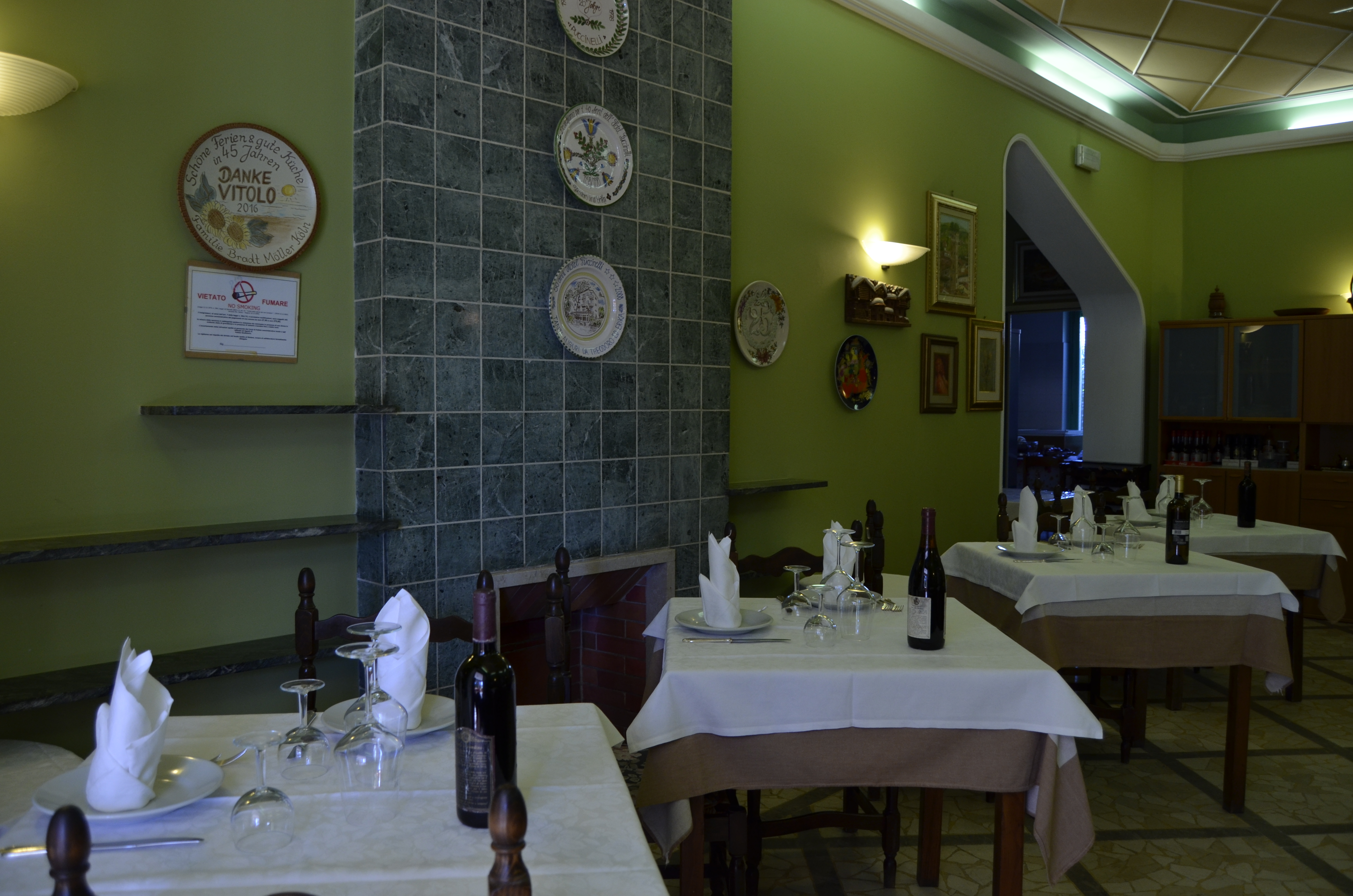 La cucina dell'Hotel è attiva da maggio a settembre per gli ospiti che desiderano usufruire della mezza pensione (cena). Il servizio in sala è curato direttamente dai titolari della struttura in un clima cordiale ed informale.